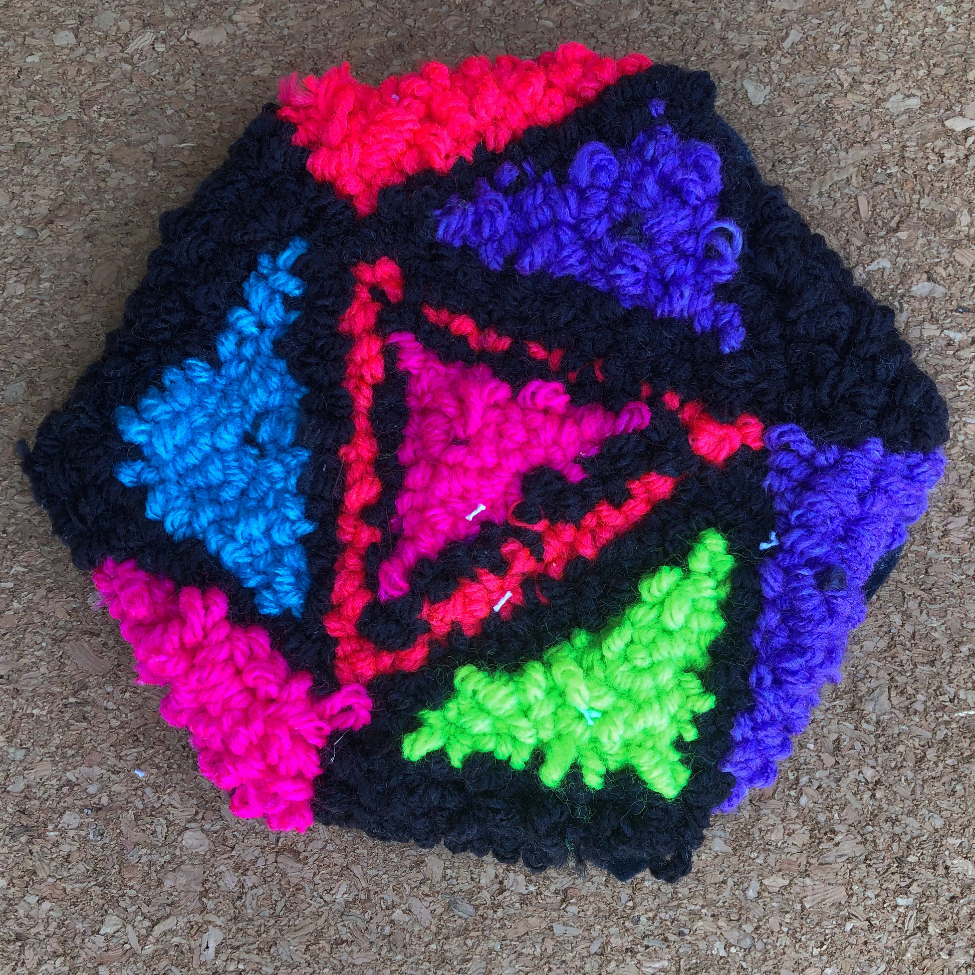 Neon and Black D20 Mug Rug