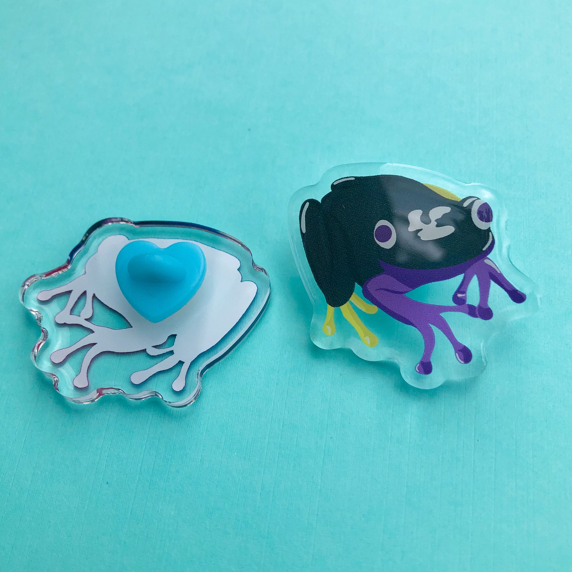 Made with high quality acrylic and has a blue heart backer that makes sure your pin is safe and secure!